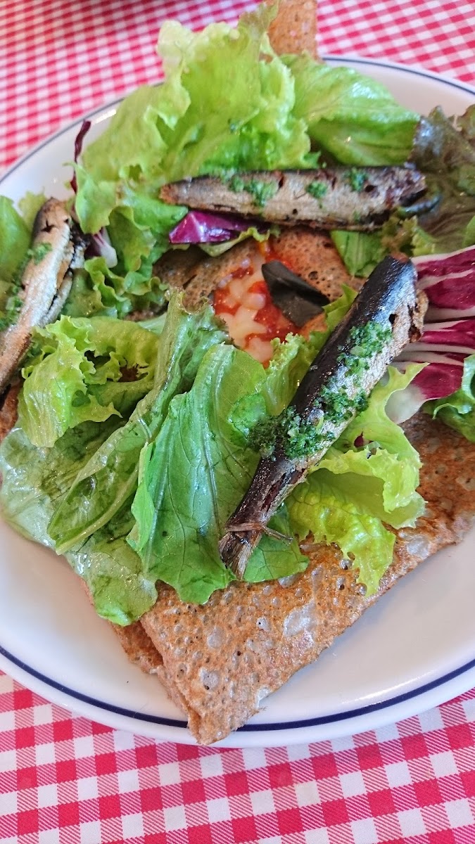 As you contemplate the menu, you'll discover a variety of seasonal galettes that are not only visually stunning but also packed with flavor. One standout dish is the 日替わりランチ (daily lunch special), which features a delicious combination of flavors like sunny-side-up eggs, ham, and cheese, accompanied by onions caramelized in apple cider. Patrons rave about the 香ばしさ (roasted aroma) combined with just the right touch of sweetness and saltiness, making each bite a memorable experience. The galettes are complemented beautifully by fresh salads that showcase the vibrant local produce, further enhancing your meal.